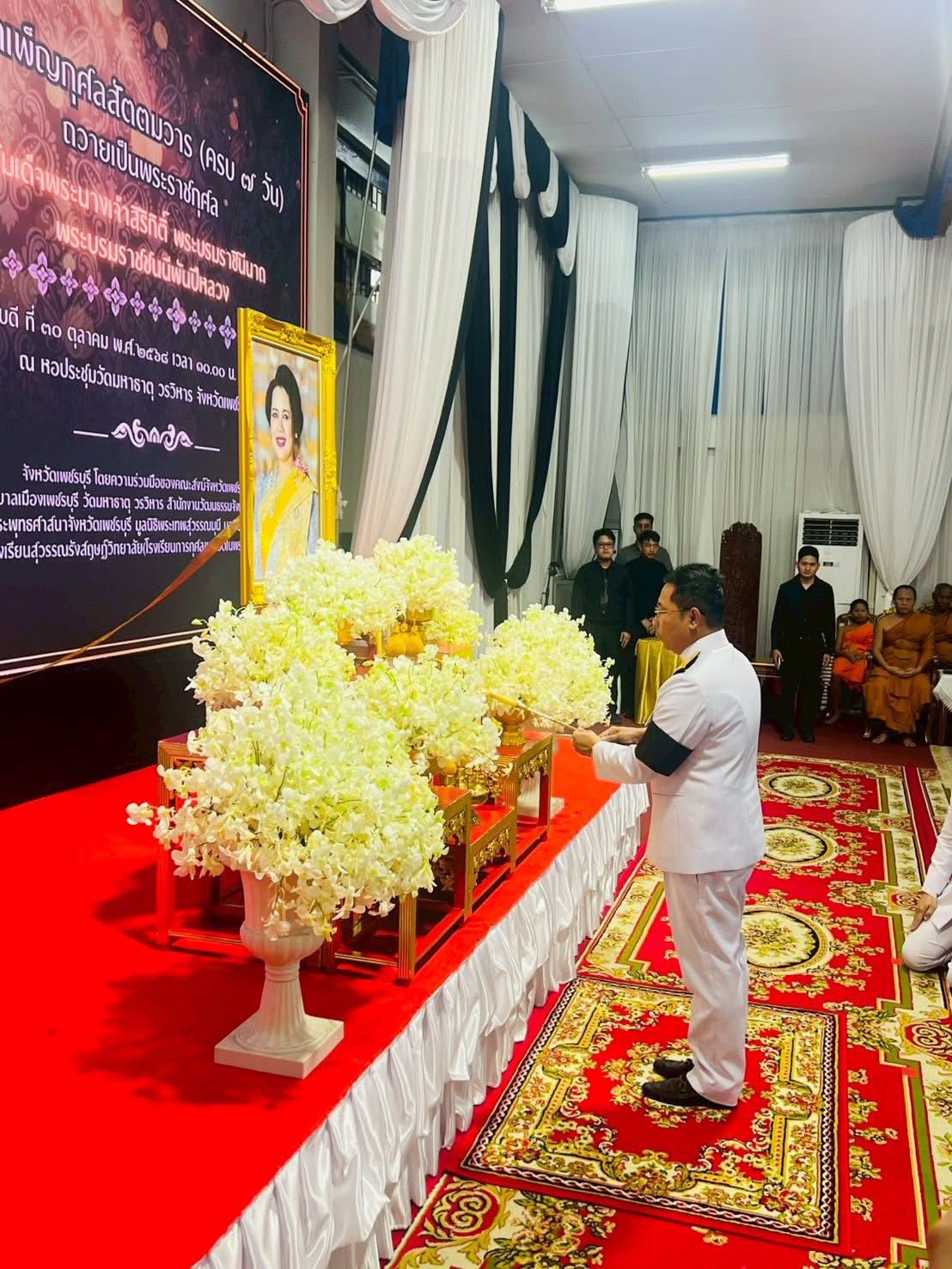 วันที่ 30 ตุลาคม 2568 นายทรรศชล พุทธรัตนา พลังงานจังหวัดเพชรบุรี พร้อมด้วยข้าราชการ และเจ้าหน้าที่สำนักงานพลังงานจังหวัดเพชรบุรี ร่วมพิธีบำเพ็ญกุศลสัตตมวาร (ครบ 7 วัน) ถวายเป็นพระราชกุศล สมเด็จพระนางเจ้าสิริกิติ์ พระบรมราชินีนาถ พระบรมราชชนนีพันปีหลวง โดยมี นายไตรภพ วงศ์ไตรรัตน์ ผู้ว่าราชการจังหวัดเพชรบุรี เป็นประธานในพิธี ณ หอประชุมวัดมหาธาตุวรวิหาร อำเภอเมืองเพชรบุรี จังหวัดเพชรบุรี